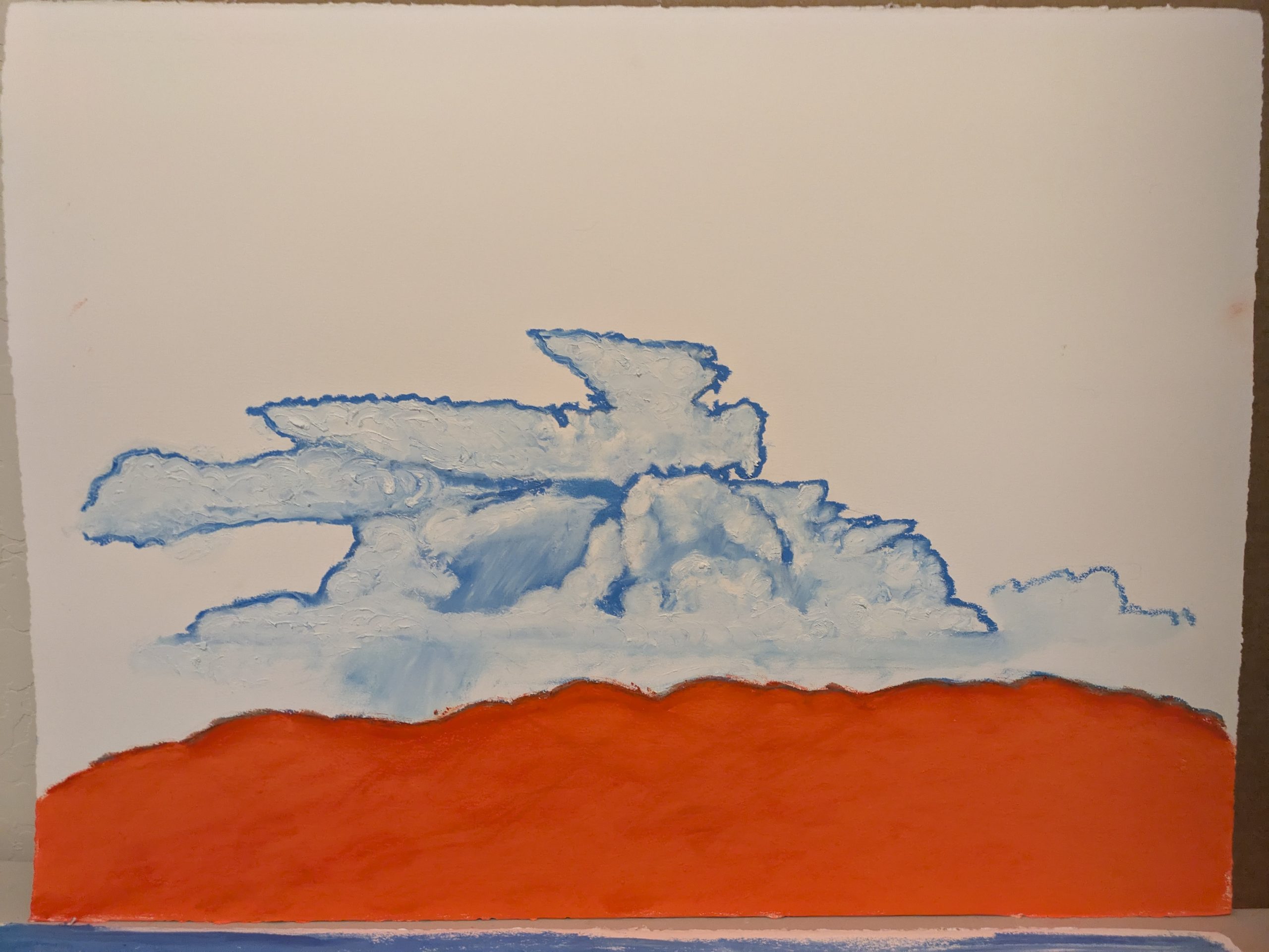 Technical Note: I focused on the sharp “jump” between the orange-red ground and the blue-faceted thunder clouds. The massive, flat field of red in the foreground creates a Visual Void of total silence, forcing the viewer to stop Ghost-Walking and become the Accomplice in the scene.